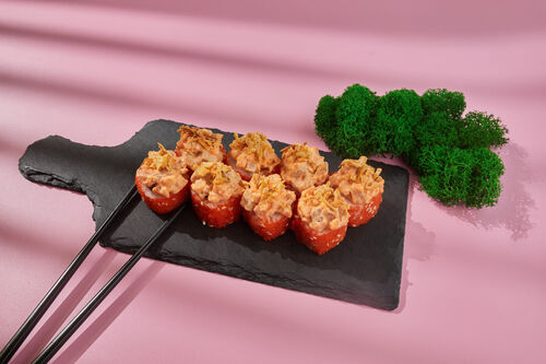 Новинка в нашем городе, которую можно попробовать только у нас. Состоит из риса, творожного сыра, нежнейшей форели, свежего огурца и хрустящей корочки из сухарей панко. Уникальный формат блюда дарит двойное наслаждение при употреблении.